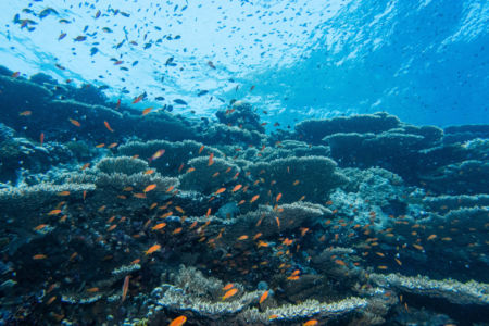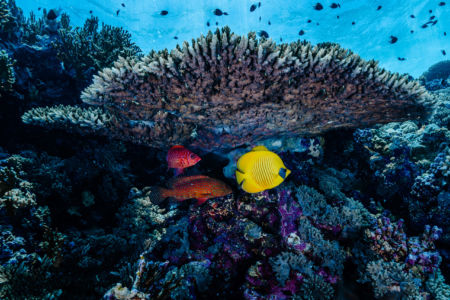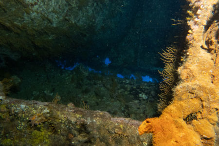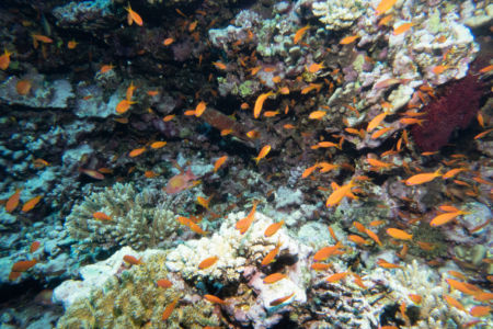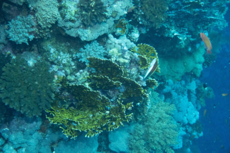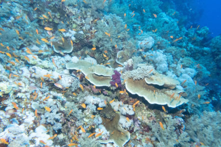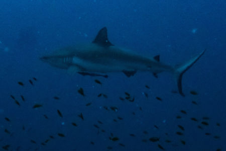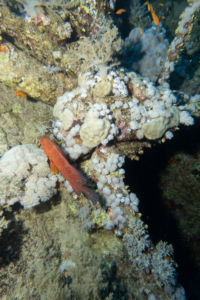 Das Mittagessen ist sehr gut, nachher überqueren wir den kurzen 5min Seeweg zum Little Brother, wo unser letzter Brothers-Tauchgang stattfinden wird. (Man darf auf den Brothers seit 2018 (?) nicht mehr übernachten, da Biologen in monatelanger Arbeit herausgefunden haben dass die Schiffe die Haie aggressiv machen.) Wir betauchen den Nordwesten, wo wir eine Putzstation besuchen, wo wir einen kurzen Blick auf einen Grauen Riffhai ergattern können. Es herrscht jedoch starke Strömung, also steigen wir ein bisschen auf und genießen die vbF am Riff. Nach dem Abendessen geht es auf nach Daedalus.