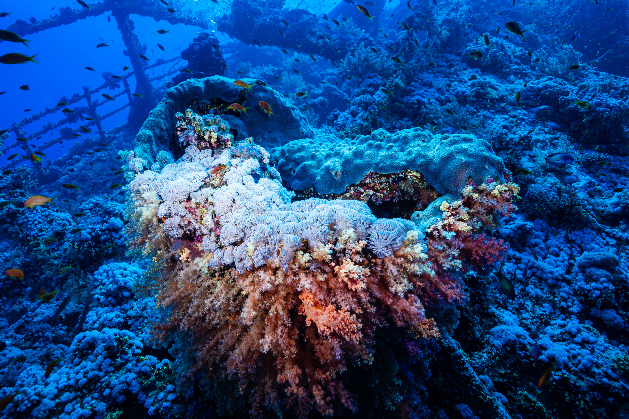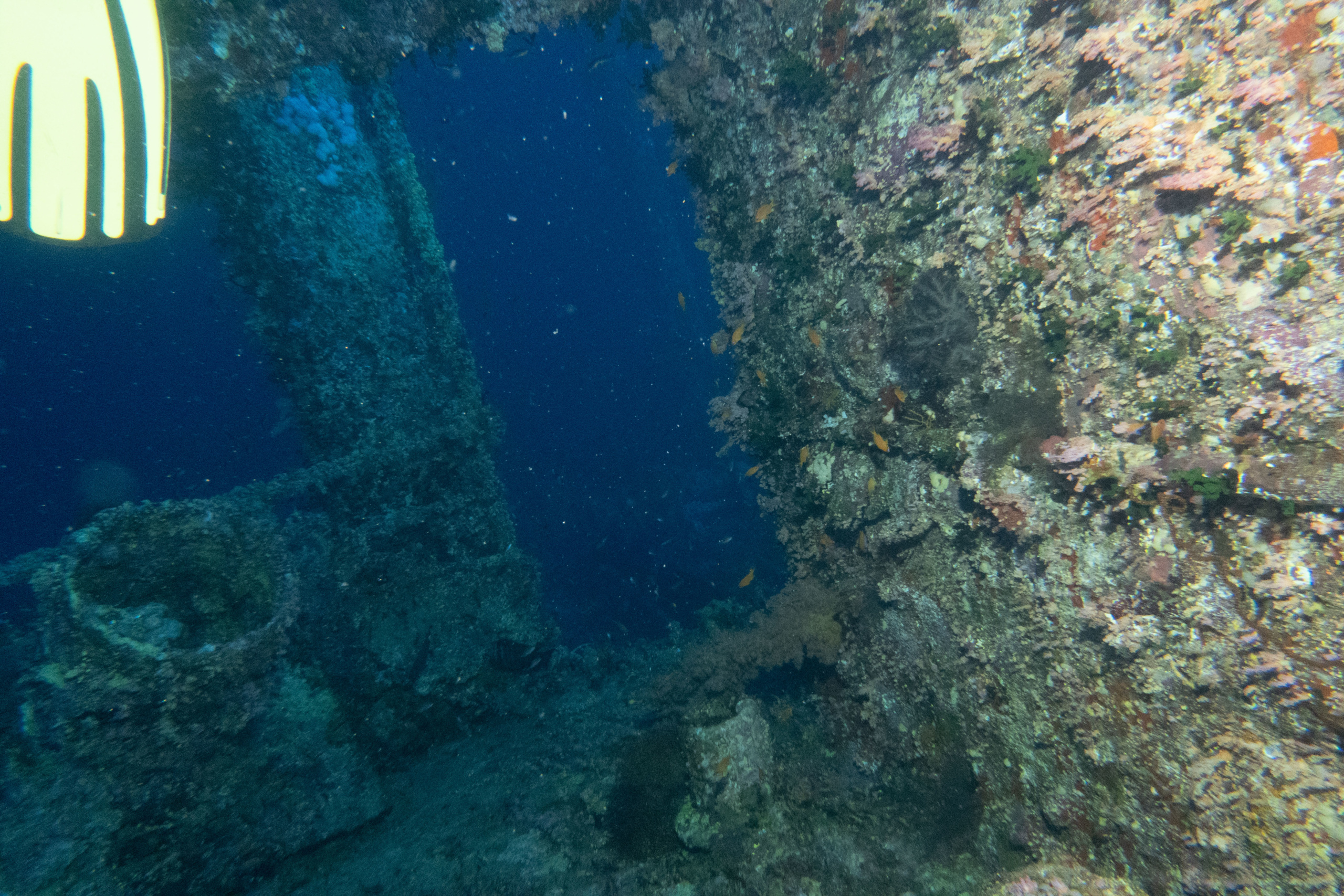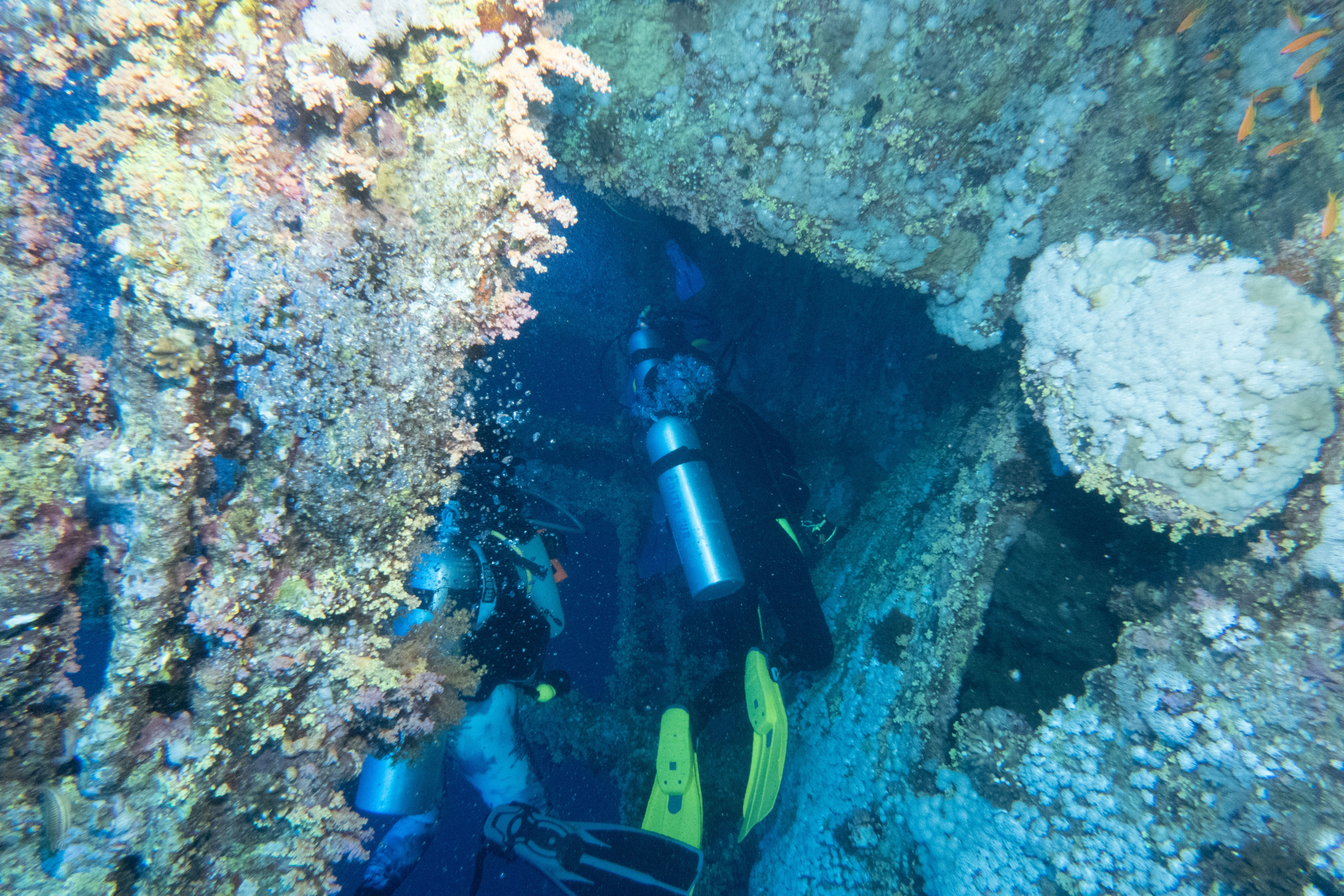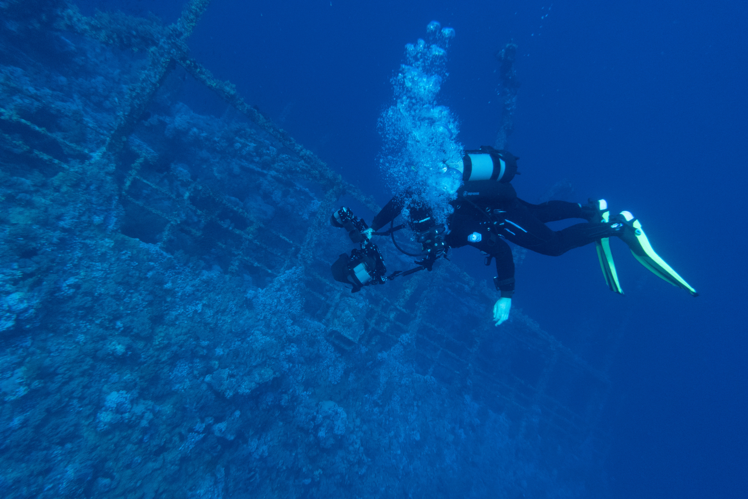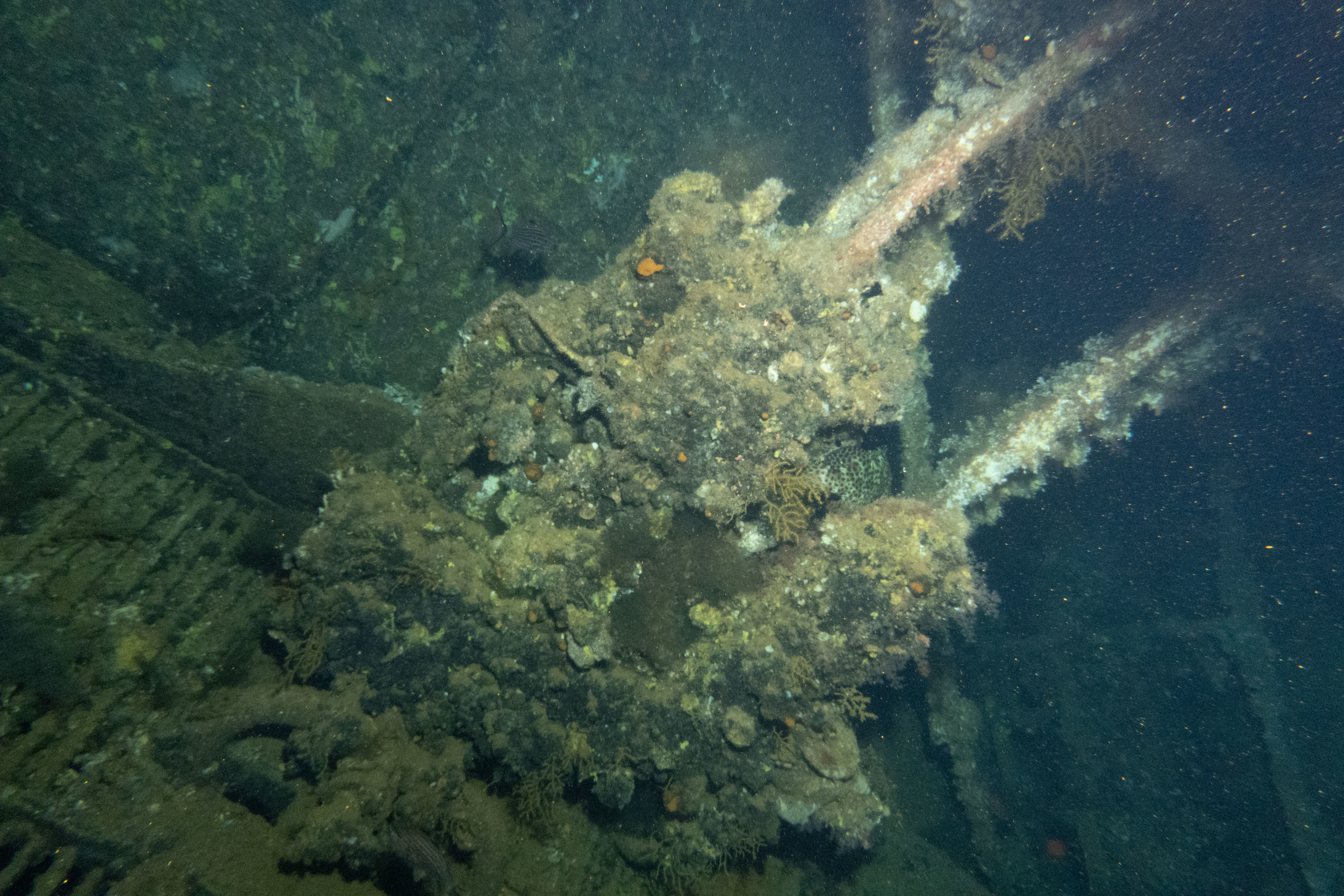 Nach dem Frühstück wird gerastet, dann geht es in den Nordwesten zum Wrack Numidia. Dieses konnten wir letztes Mal nicht betauchen, da zu viel Strömung war. Doch diesmal klappt alles, wir tauchen auch ins Wrack hinein, draußen ist es sehr bewachsen, da es schon seit 100 Jahren hier liegt. Am Rückweg haben wir wieder vbF, die Brothers sind ja immerhin eins der schönsten Riffe überhaupt. Wir sehen wieder Barracudas und Makrelenschwärme.