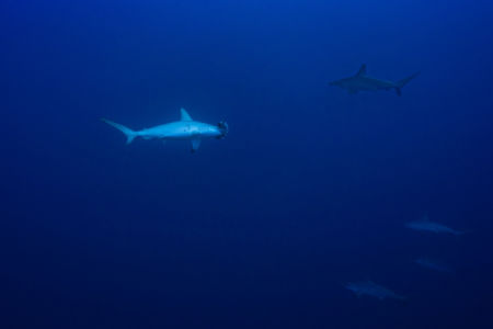 Wieder um 5 in der Früh beginnt mein wohl bislang überhaupt stressigster und lehrreichster Tauchtag. Wir erfahren beim Briefing dass wir in den Nordosten droppen, wo es gute Chancen auf Hammerhaie gibt. Allerdings ist die Strömungssituation unklar und wir werden vor sogenannten Waschmaschinen gewarnt, einer speziellen Strömungsart, die sehr stark sein kann und von einem auf den anderen Meter auftreten kann. Wir werden also vom Zodiac abgeworfen und sehen auch tatsächlich eine sehr große Schule an Hammerhaien (14+) und einem Seidenhai(?). Wir freuen uns und genießen die scheuen Tiere. Als wir wieder zum Riff aufsteigen sind Papa und ich ein bisschen zu weit draußen. Wir sehen, wie die anderen sich immer weiter entfernen, wir können nicht näher kommen. Als ich ans Riff schaue sehe ich, dass wir uns trotz kompletter Anstrengung rückwärts bewegen. Ich bekomme etwas Panik und habe von der Anstrengung das Gefühl, nicht genug Luft zu bekommen. Ich fange an zu hyperventilieren. Hier fällt mir auf, dass das möglicherweise keine gute Idee ist, ich fange mich wieder und wir entschließen uns zusammen mit den anderen, die nun teilweise auch in der Waschmaschine gefangen sind, uns abtreiben zu lassen anstatt gegen die Strömung anzuschwimmen. Der Guide schießt die Boje und wir brechen den Tauchgang ab.