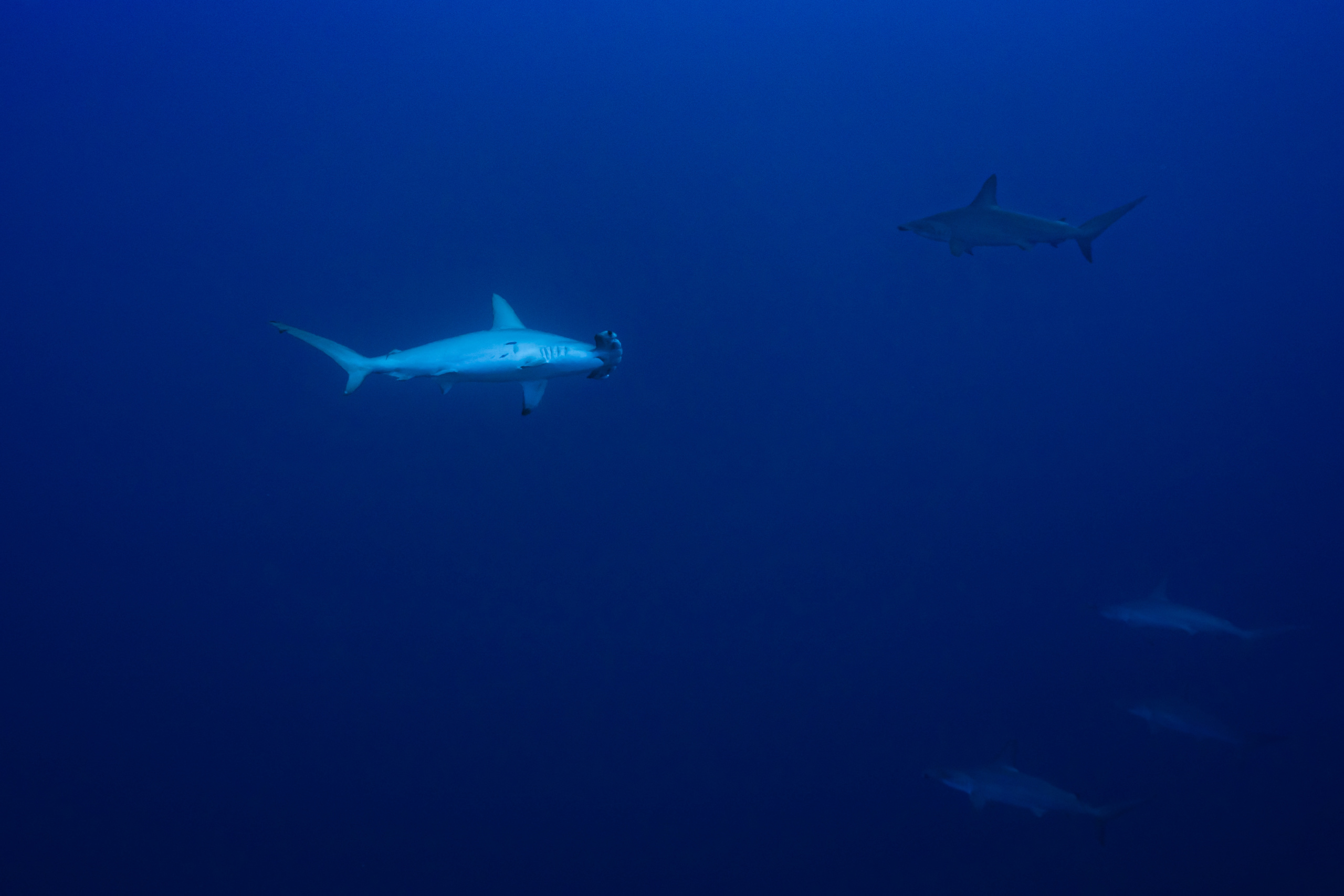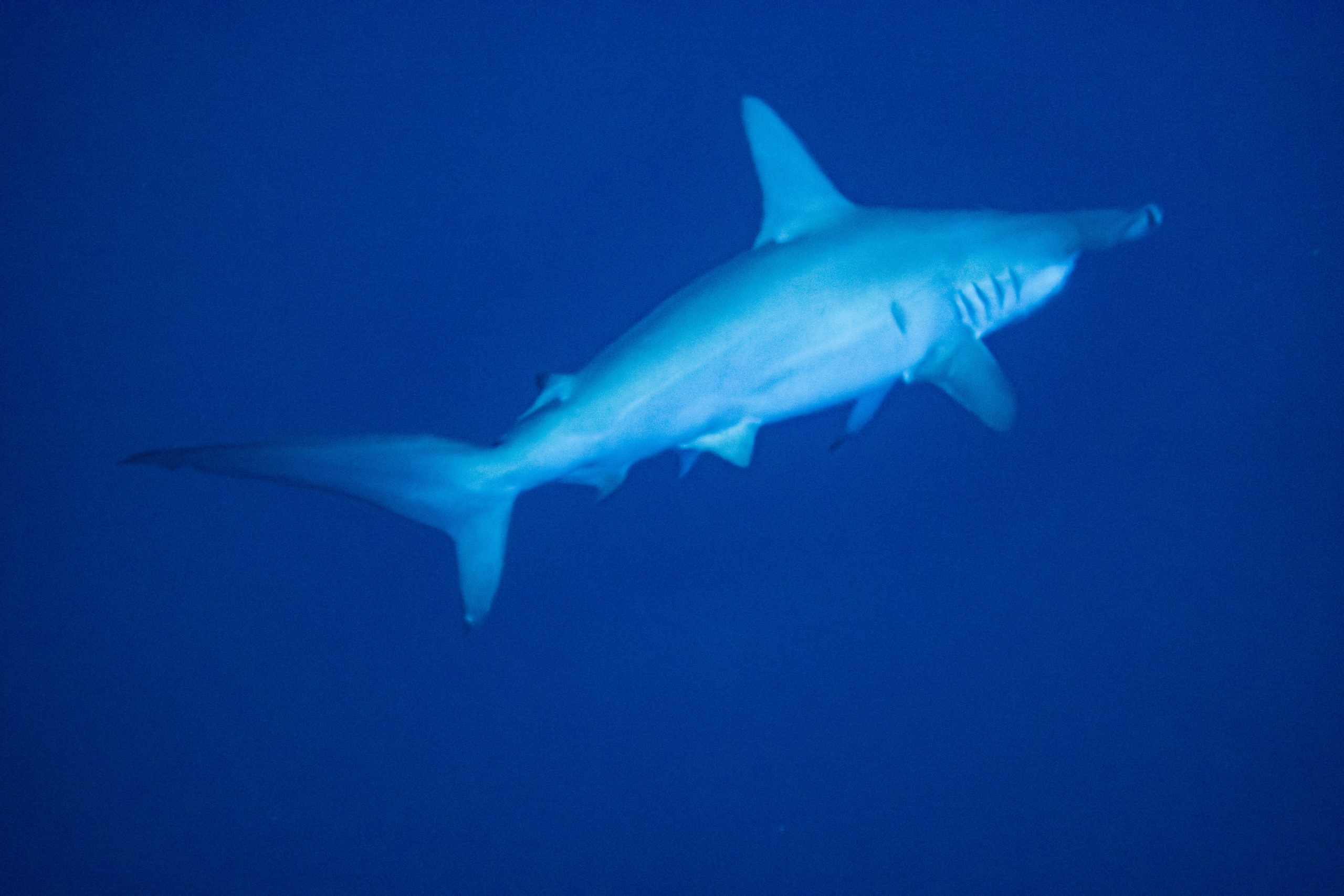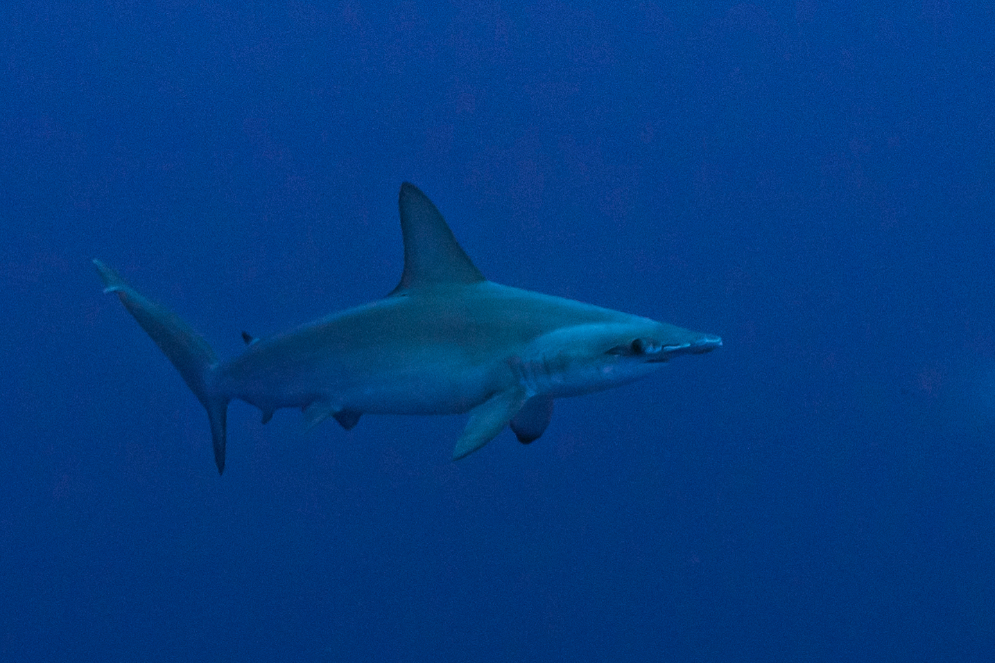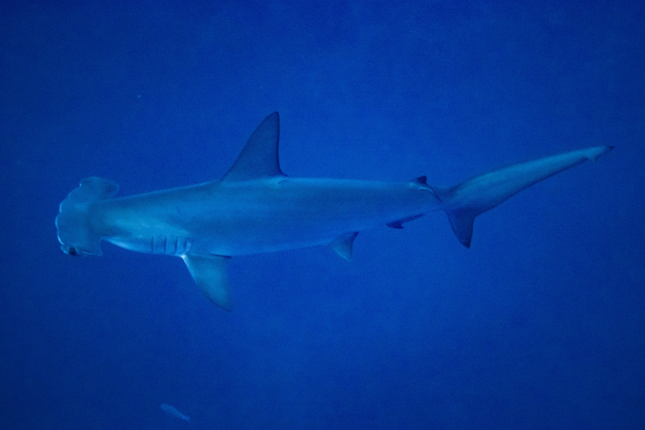Wieder um 5 in der Früh beginnt mein wohl bislang überhaupt stressigster und lehrreichster Tauchtag. Wir erfahren beim Briefing dass wir in den Nordosten droppen, wo es gute Chancen auf Hammerhaie gibt. Allerdings ist die Strömungssituation unklar und wir werden vor sogenannten Waschmaschinen gewarnt, einer speziellen Strömungsart, die sehr stark sein kann und von einem auf den anderen Meter auftreten kann. Wir werden also vom Zodiac abgeworfen und sehen auch tatsächlich eine sehr große Schule an Hammerhaien (14+) und einem Seidenhai(?). Wir freuen uns und genießen die scheuen Tiere. Als wir wieder zum Riff aufsteigen sind Papa und ich ein bisschen zu weit draußen. Wir sehen, wie die anderen sich immer weiter entfernen, wir können nicht näher kommen. Als ich ans Riff schaue sehe ich, dass wir uns trotz kompletter Anstrengung rückwärts bewegen. Ich bekomme etwas Panik und habe von der Anstrengung das Gefühl, nicht genug Luft zu bekommen. Ich fange an zu hyperventilieren. Hier fällt mir auf, dass das möglicherweise keine gute Idee ist, ich fange mich wieder und wir entschließen uns zusammen mit den anderen, die nun teilweise auch in der Waschmaschine gefangen sind, uns abtreiben zu lassen anstatt gegen die Strömung anzuschwimmen. Der Guide schießt die Boje und wir brechen den Tauchgang ab.