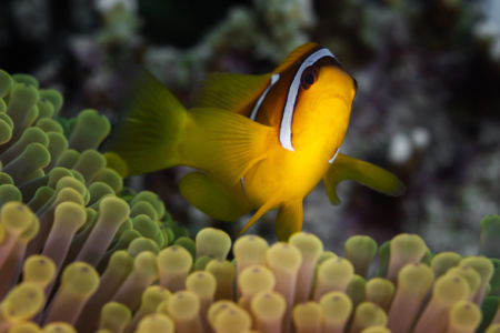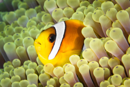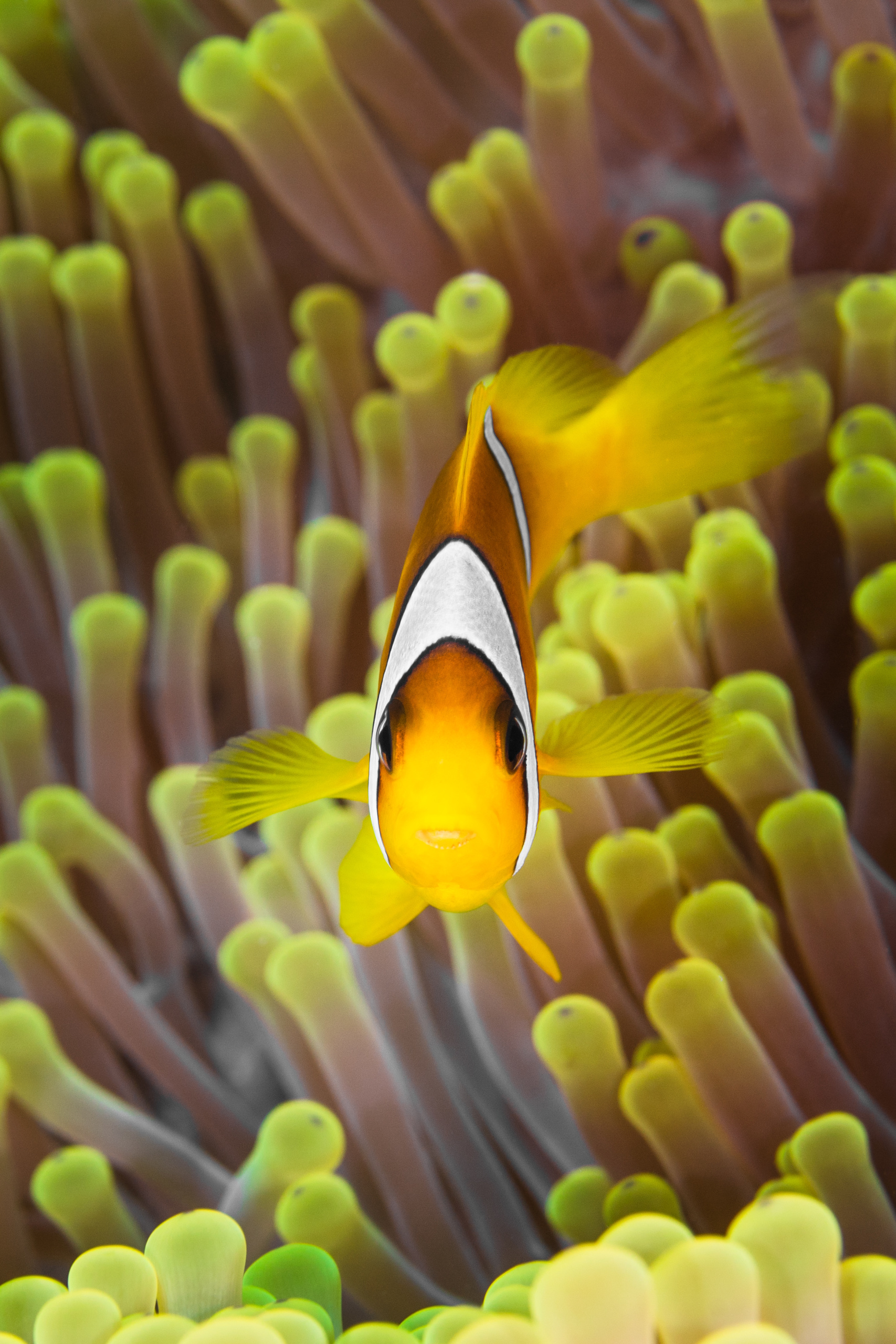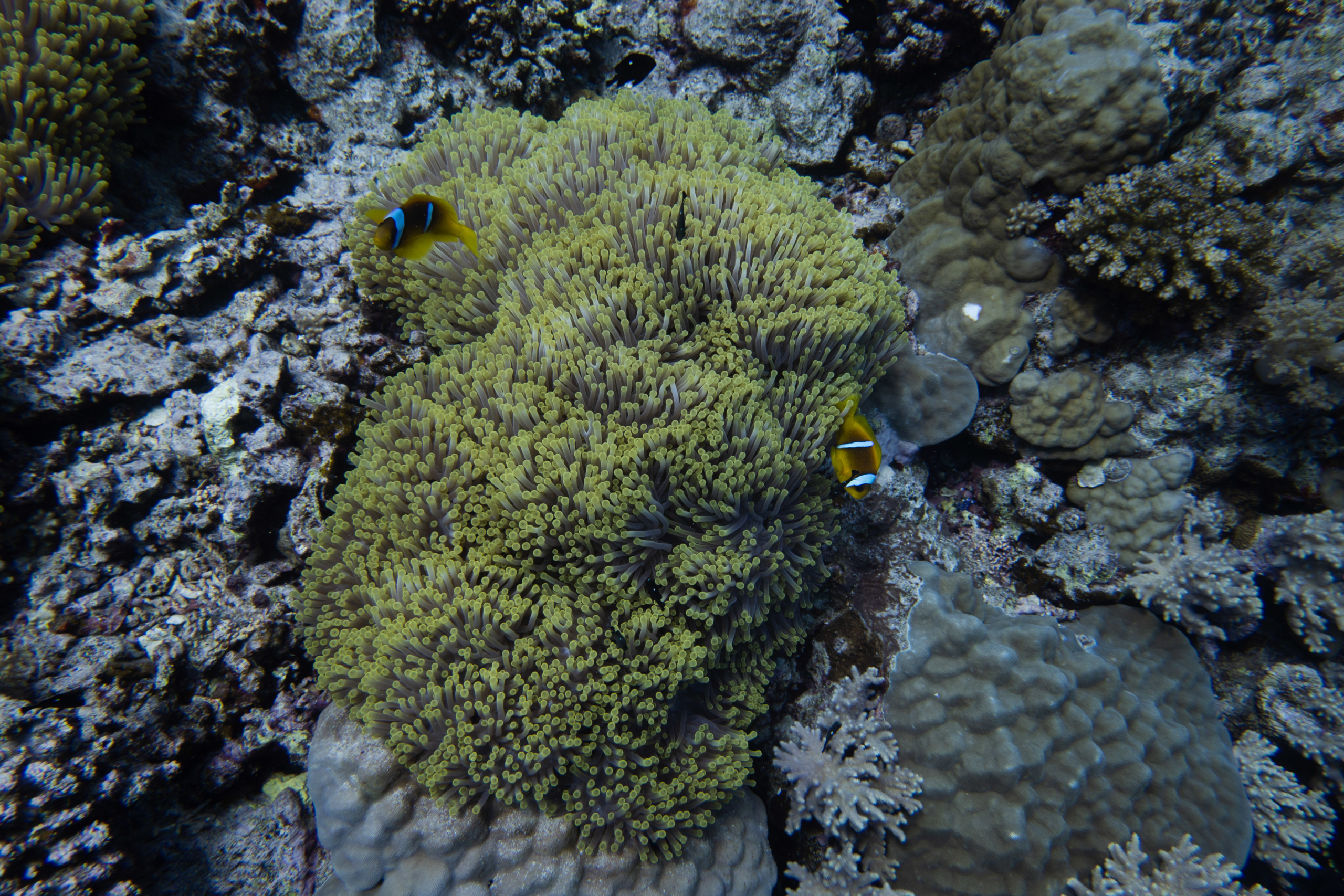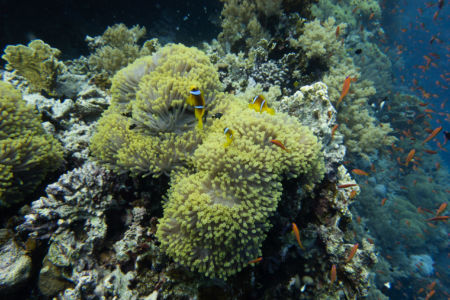Der letzte Tauchgang auf Daedalus geht zur Anemone City, die wie der Name schon sagt aus vielen Anemonen mit Clownfischen auf ca. 5-10m besteht. Ich mache mit dem Makroobjektiv einige Fotos, dann schwimmen wir noch das wieder sehr schöne Riff entlang. Nach diesem gelungenen Tag geht es über einen etwas turbolenteren Seeweg auf nach Elphinstone.