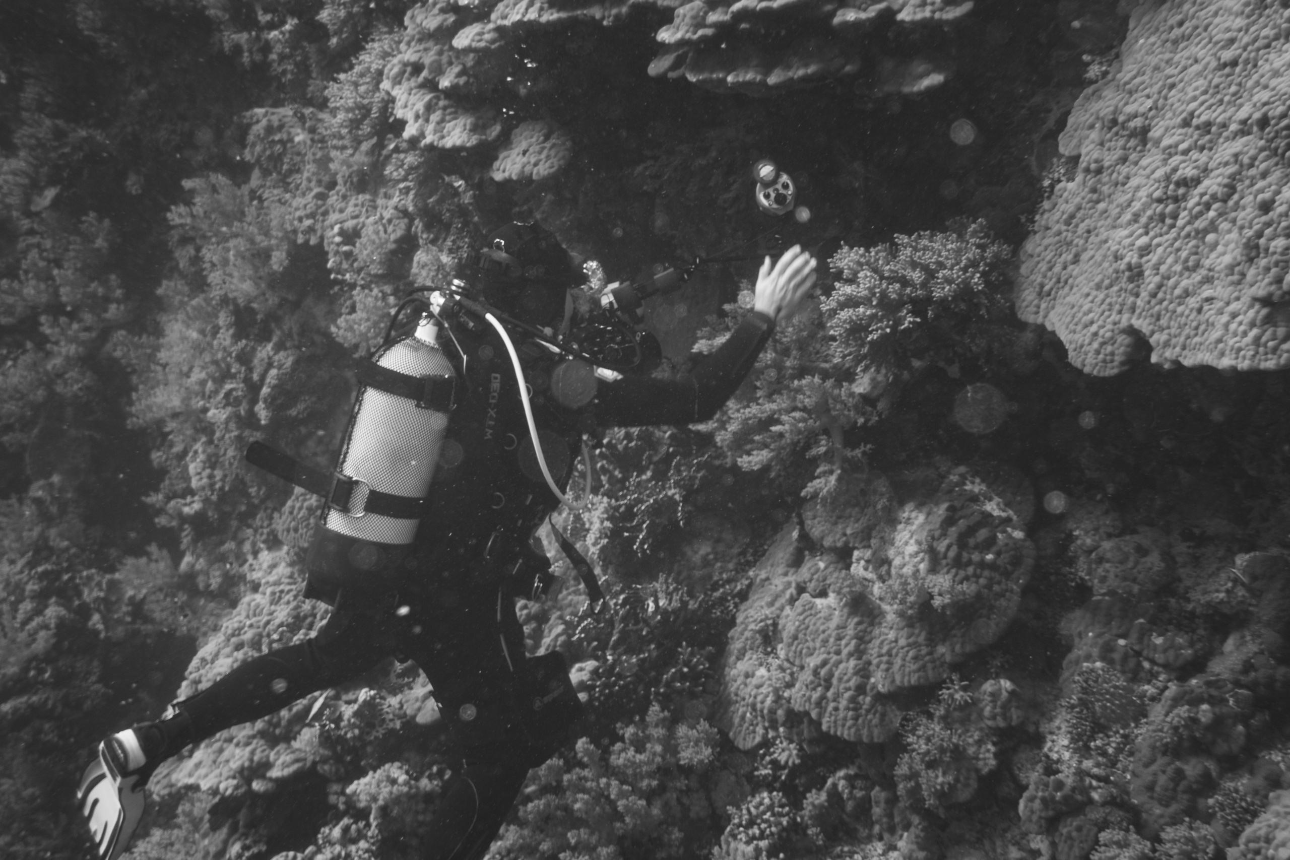 Redemption-Day. Es geht wieder in den Norden. Selber Tauchgang wie die beiden ersten am Vortag. Die Statusanzeige des Vakuumsystems meines Kameragehäuses zeigt jedoch ein rotes Licht, ich kann sie also nicht mitnehmen. Ich gehe im Kopf immer wieder die Liste an Dingen, die ich am Vortag gelernt habe durch. Wir werden vom Zodiac abgeworfen und es geht wieder auf 35-40m. Wie am Vortag sehen wir eine große Schule an Hammerhaien, die diesmal auch sehr nah an uns rankommen. Ich schaue jedoch immer wieder auf den Kompass um mich zu orientieren, wo das Riff ist und gebe Acht, zwischen Guide und Riff zu sein. Nachdem wir einige Minuten lange die Hammerhaie genossen haben geht es wieder zurück zum Riff. Auch heute ist wieder eine Waschmaschine, doch da ich besser aufgepasst habe, sind wir mit ein paar wenigen Flossenschlägen auch wieder raus. Wir driften gemütlich in den Nordwesten, das Riff ist sehr schön. Auch mein Luftverbrauch, der die ganze Woche schon eher meh ist, ist sehr viel besser, weshalb ich schließe, dass das vor allem an der Kamera liegt. Insgesamt ein sehr schöner Tauchgang, der mir auch das Gefühl gibt, lernfähig zu sein.