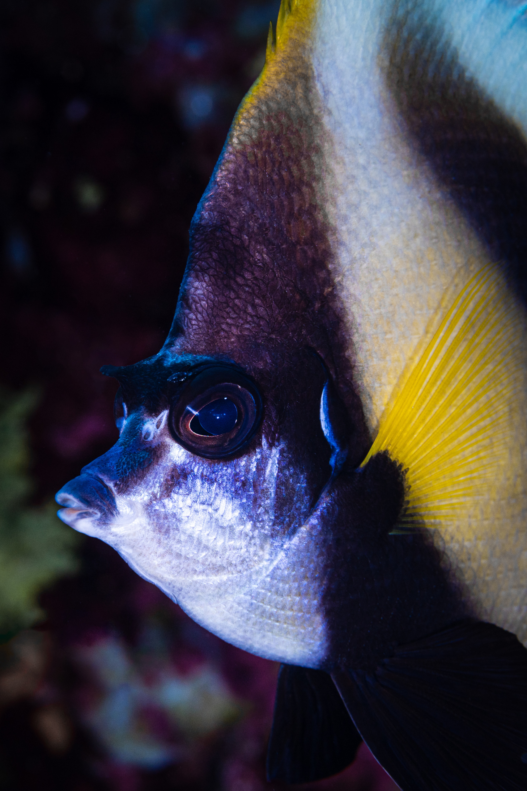 Da der letzte Tauchgang so super war, lassen wir den Norden und betauchen wieder das Südplateau. Ich baue die Kamera neu zusammen und wechsle die Batterie des Vakuumsystems, worauf sie nicht mehr rot leuchtet, ich tauche jedoch dann mit dem 90mm Objektiv. Wir sehen auch den neugierigen Napoleonfisch und seinen Nachwuchs wieder und spielen einige Zeit mit ihm. Ansonsten ein schöner Tauchgang mit vbF.