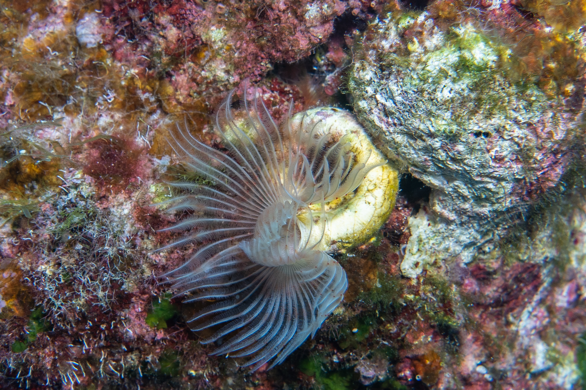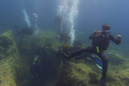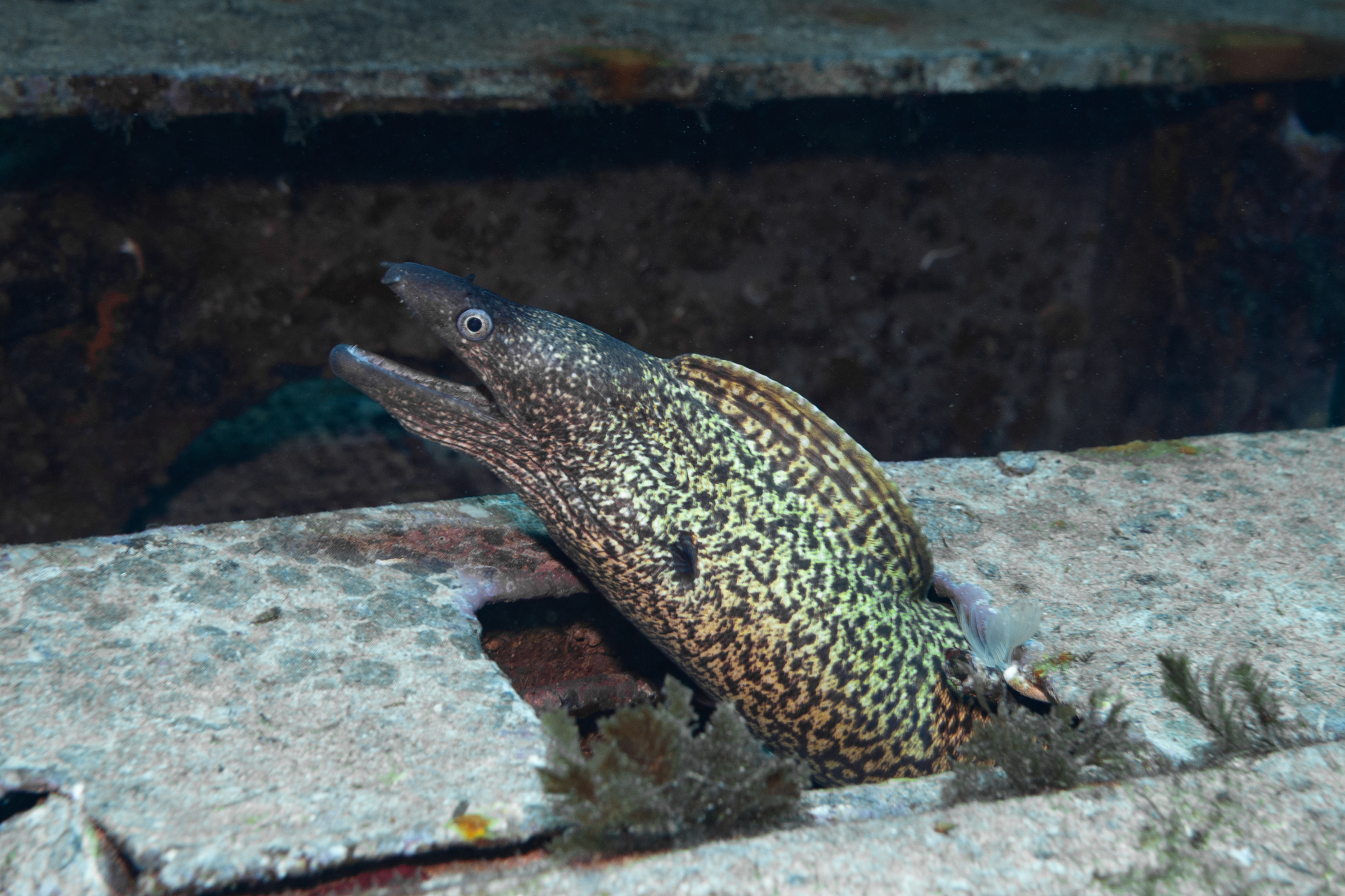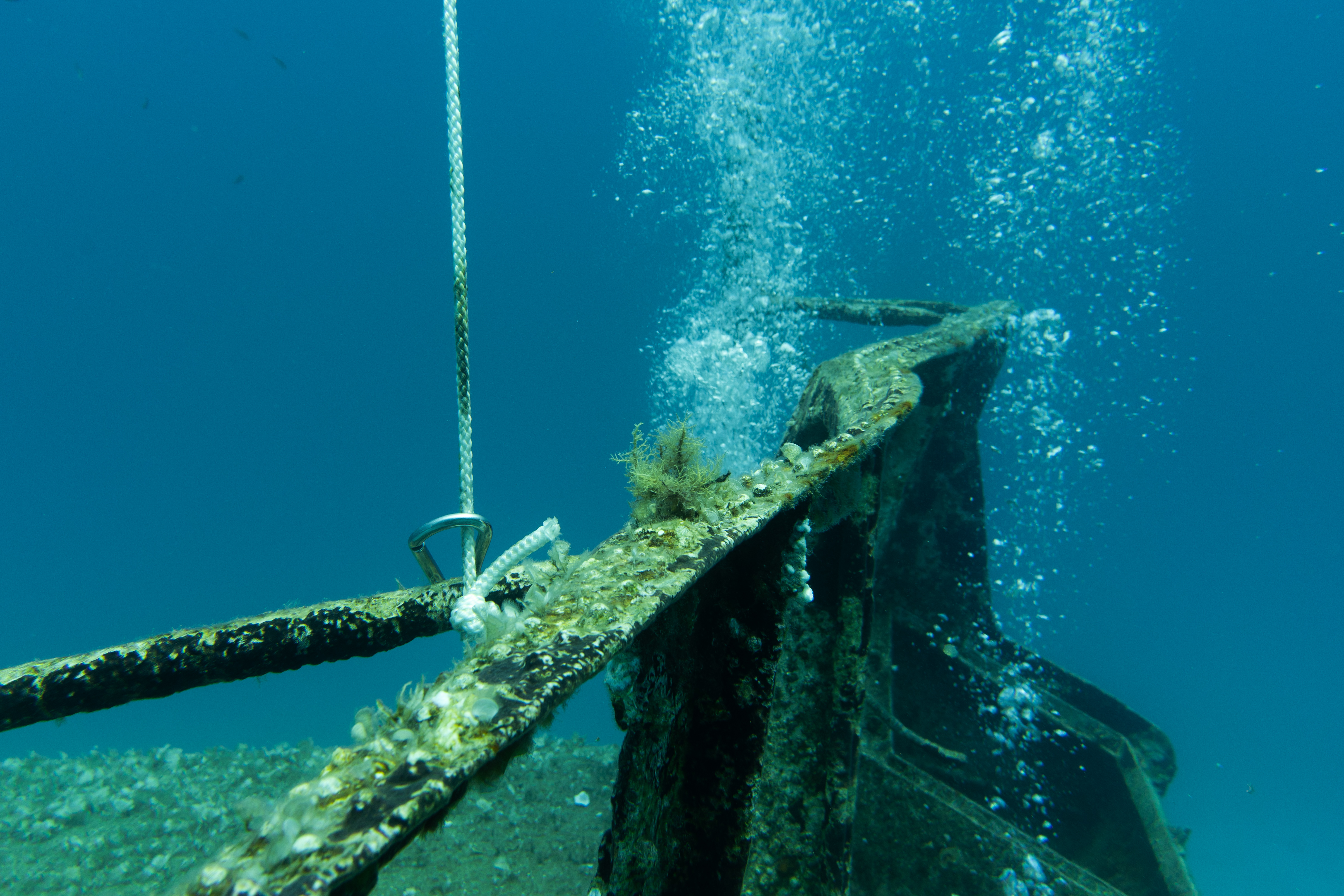 Heute waren wir nochmal von Hondoq aus mit dem Boot unterwegs. Der erste Tauchplatz, Lantern Point, war mir dabei noch unbekannt. Man droppt durch ein Loch im Boden spektakulär von 5 auf 18m in eine Unterwasserlandschaft voller Felsblöcke, wo man wieder in vielen kleinen Spalten und Höhlen nach allem möglichen Ausschau halten kann. Der zweite Tauchgang war da für mich die P31, ein Wrack, das auf 18m liegt und daher schön lange besichtigt werden kann. Papa hat diese allerdings schon am Dienstag gesehen und ist daher in die Alexander’s Cave gegangen.