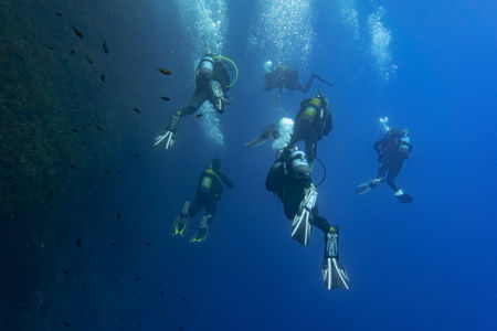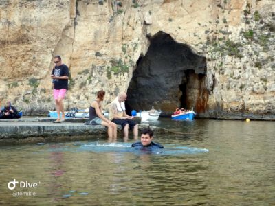 Das war’s auch schon wieder, heute war der letzte Tauchtag. Es war ein würdiges Ende, wir waren an zwei Plätzen, die wir noch nicht kannten. Der erste war überhaupt ein Tauchplatz, der nichtmal auf der Liste unseres Tauchcenters steht, Ta Cewla. Dort gibt es viele Höhlen, unter anderem eine mit einem Eingang bei ca. 30m und einem anderen bei ca 10m, wo das Licht wieder sehr schön von außen hereinleuchtet. Der zweite war San Dimitri, wo es ein Plateau gibt mit einer Schlucht daneben, in der Boulder liegen, unter denen man auch durchtauchen kann. Dort haben wir viele Tiere gesehen, unter anderem eine Moräne, einen Bärenkrebs und Baracudas.