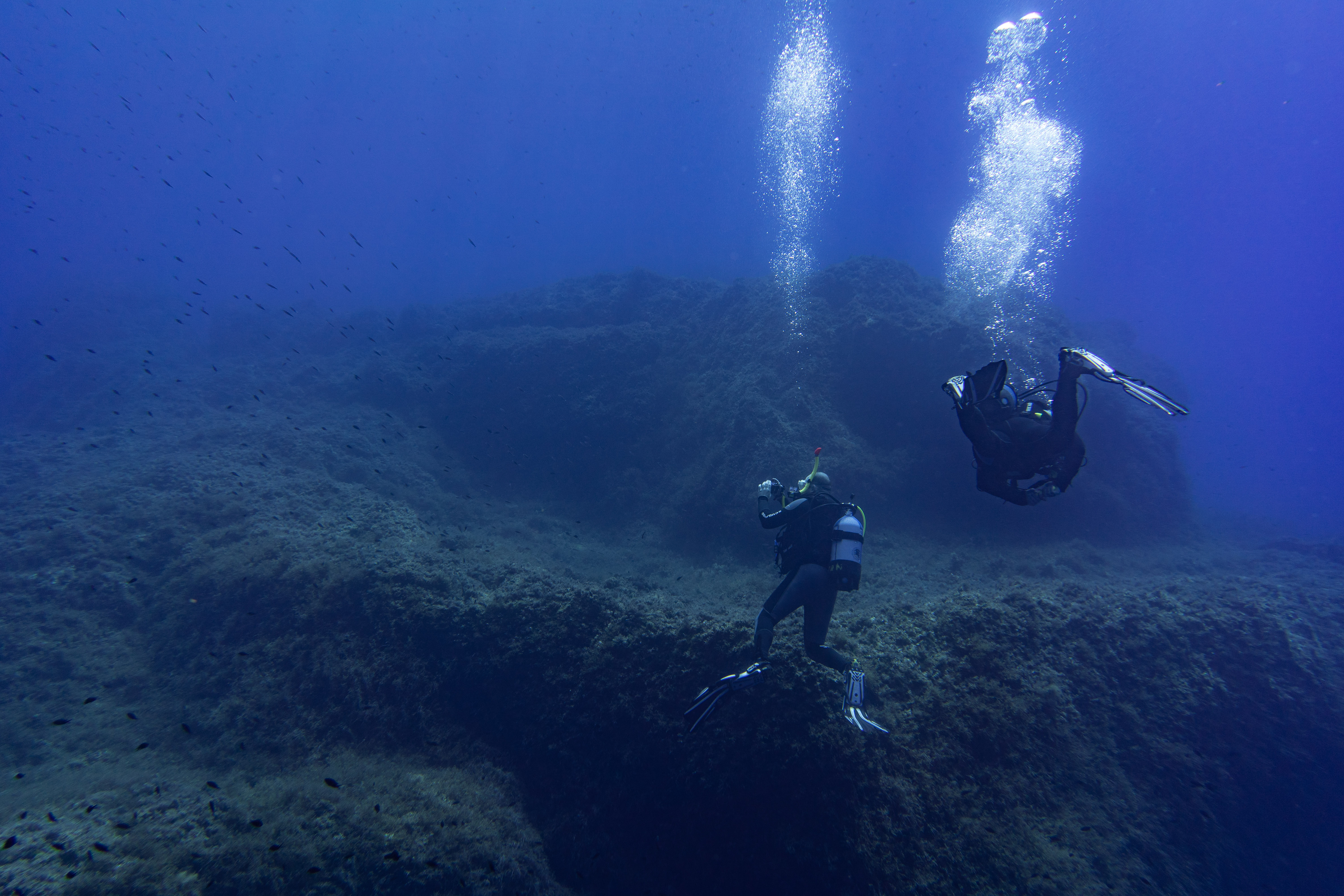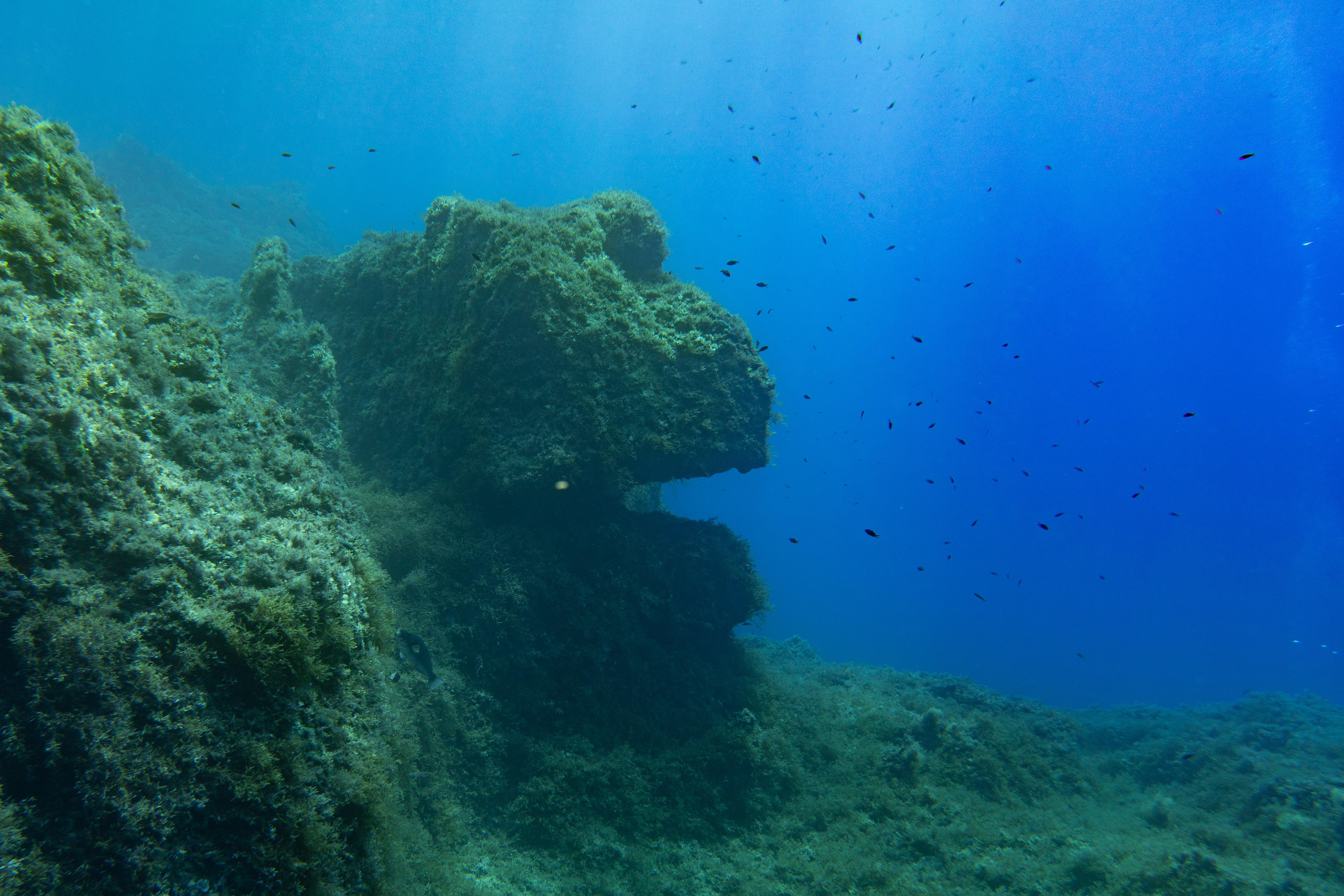 Das war’s auch schon wieder, heute war der letzte Tauchtag. Es war ein würdiges Ende, wir waren an zwei Plätzen, die wir noch nicht kannten. Der erste war überhaupt ein Tauchplatz, der nichtmal auf der Liste unseres Tauchcenters steht, Ta Cewla. Dort gibt es viele Höhlen, unter anderem eine mit einem Eingang bei ca. 30m und einem anderen bei ca 10m, wo das Licht wieder sehr schön von außen hereinleuchtet. Der zweite war San Dimitri, wo es ein Plateau gibt mit einer Schlucht daneben, in der Boulder liegen, unter denen man auch durchtauchen kann. Dort haben wir viele Tiere gesehen, unter anderem eine Moräne, einen Bärenkrebs und Baracudas.