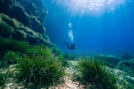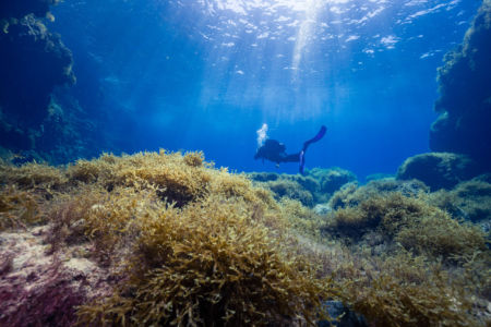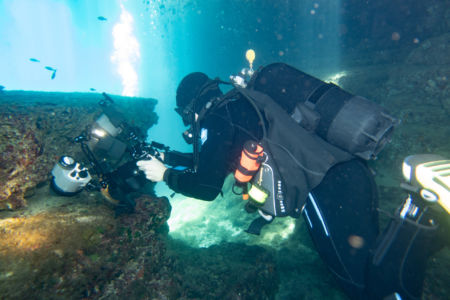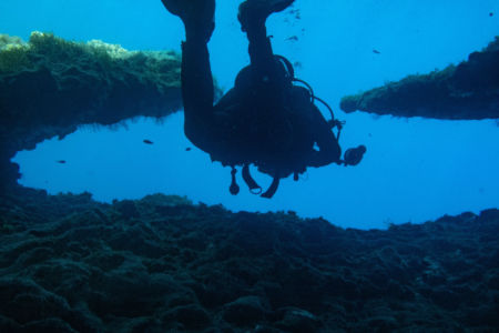 Wir sind beide etwas nervös, da wir schon seit über eineinhalb Jahren nichtmehr getaucht sind, der erste Tauchgang ist aber mit den Comino Caves perfekt dafür – es geht nur ca. 10m tief und der Einstieg ist über einer Sandbank. Wir starten über die Arch, die normalerweise erst am Schluss dran ist und sehen direkt einen Oktopus. Ich mache einige Bilder, doch das scheint ihn etwas zu stören und er rennt davon. (Allerdings auch mal cool einen laufenden Oktopus zu sehen – das habe ich bisher nur bei Nacht erlebt) Wir tauchen weiter durch die Cavern in die Höhlen und kommen zum Z. Zwischendurch fühlt sich der Druckausgleich im rechten Ohr komisch an, er funktioniert aber durchgehend und das komische Gefühl legt sich auch bald. Insgesamt ein sehr entspannter Tauchgang, ideal um wieder reinzukommen.
