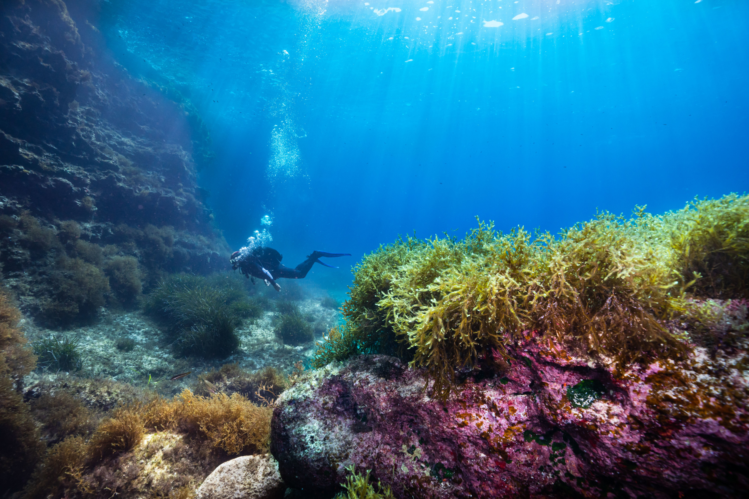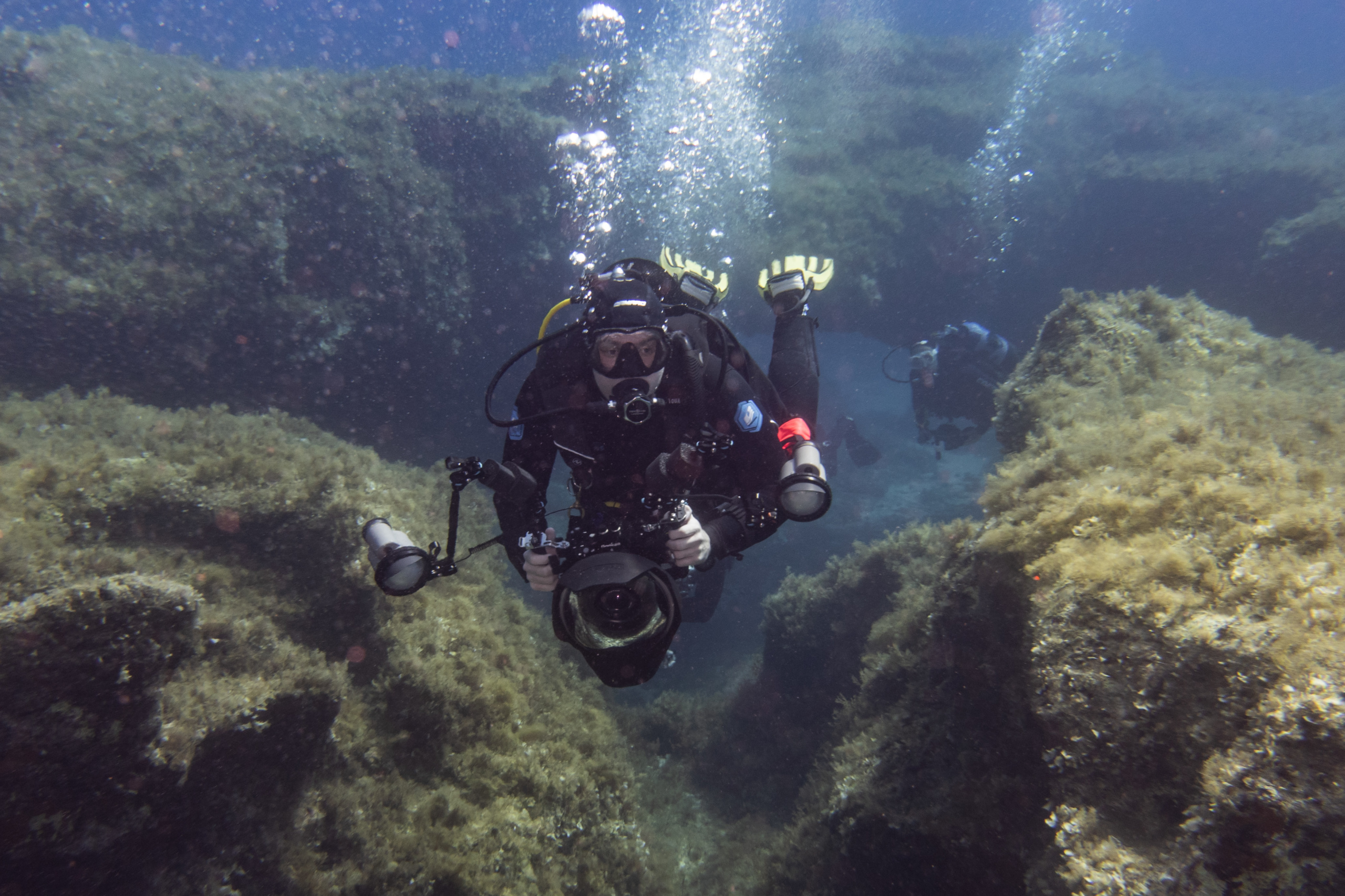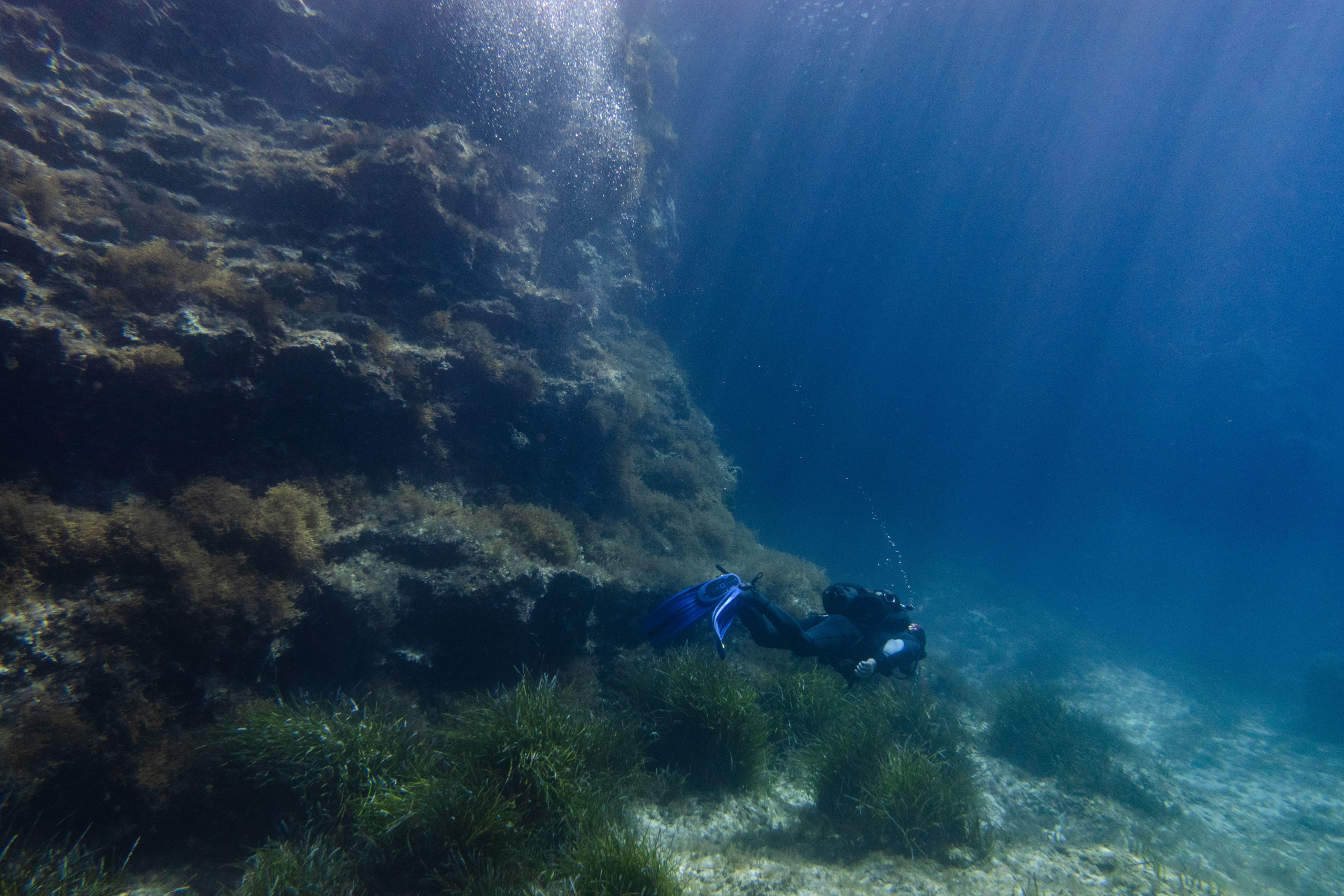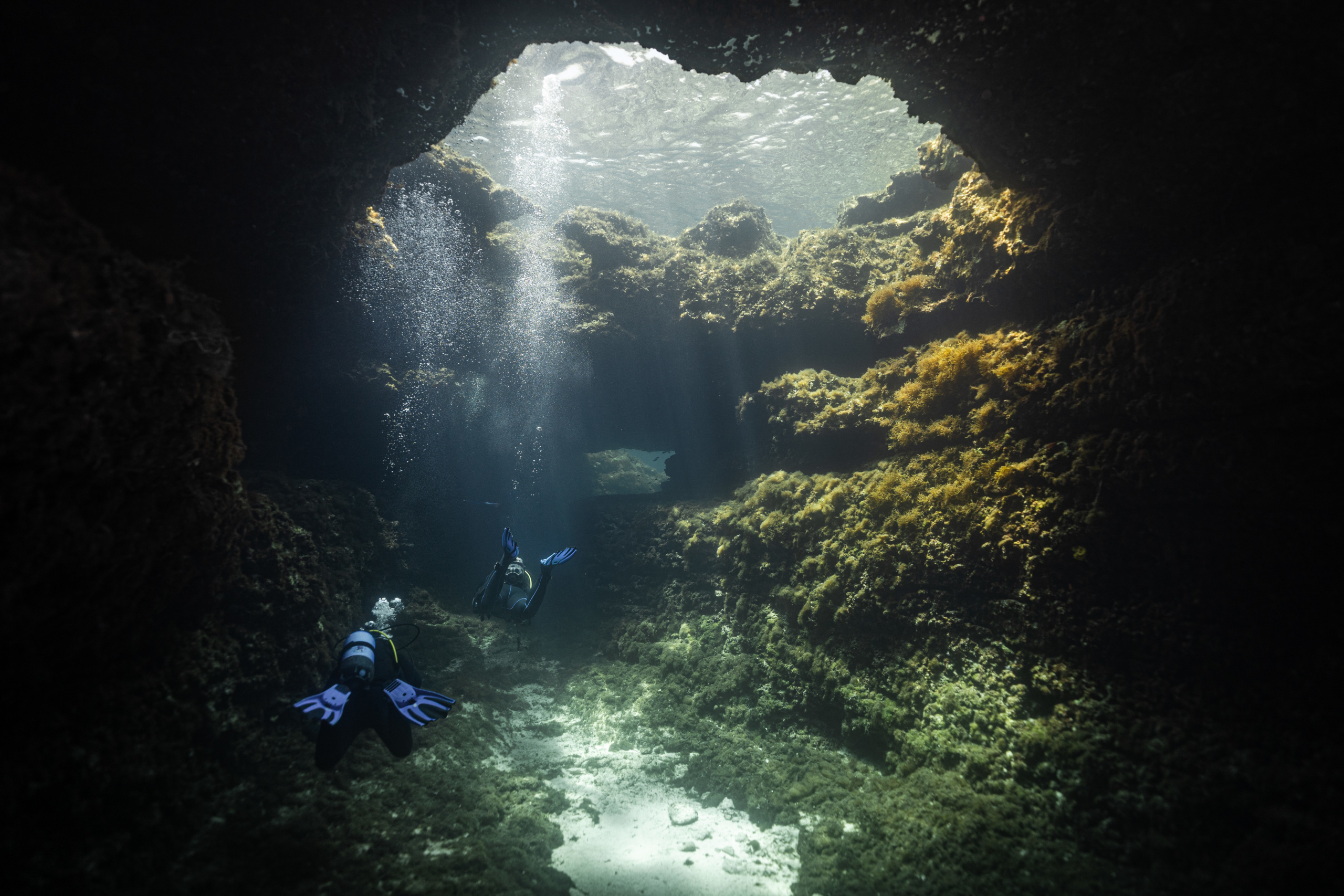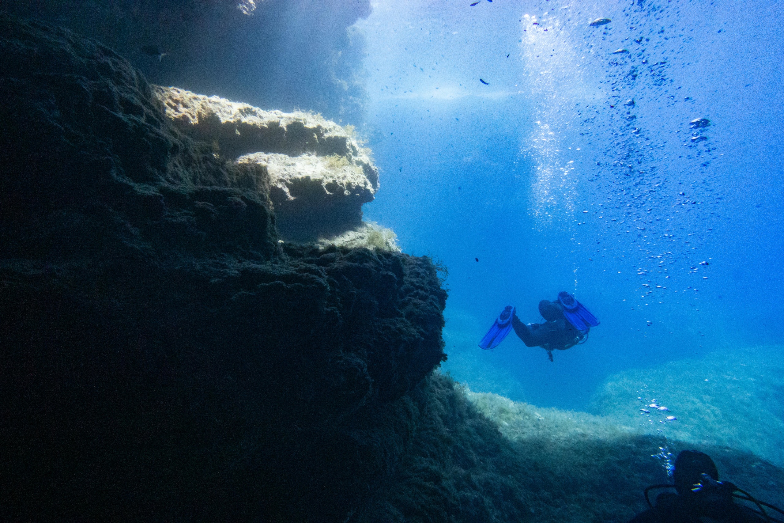 Wir sind beide etwas nervös, da wir schon seit über eineinhalb Jahren nichtmehr getaucht sind, der erste Tauchgang ist aber mit den Comino Caves perfekt dafür – es geht nur ca. 10m tief und der Einstieg ist über einer Sandbank. Wir starten über die Arch, die normalerweise erst am Schluss dran ist und sehen direkt einen Oktopus. Ich mache einige Bilder, doch das scheint ihn etwas zu stören und er rennt davon. (Allerdings auch mal cool einen laufenden Oktopus zu sehen – das habe ich bisher nur bei Nacht erlebt) Wir tauchen weiter durch die Cavern in die Höhlen und kommen zum Z. Zwischendurch fühlt sich der Druckausgleich im rechten Ohr komisch an, er funktioniert aber durchgehend und das komische Gefühl legt sich auch bald. Insgesamt ein sehr entspannter Tauchgang, ideal um wieder reinzukommen.