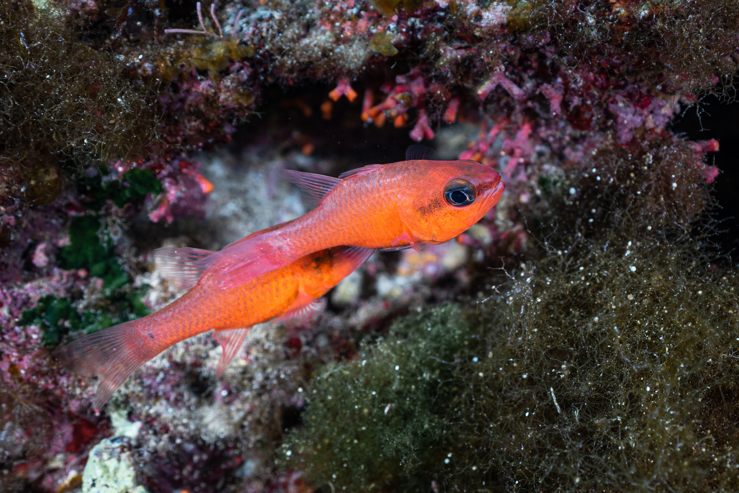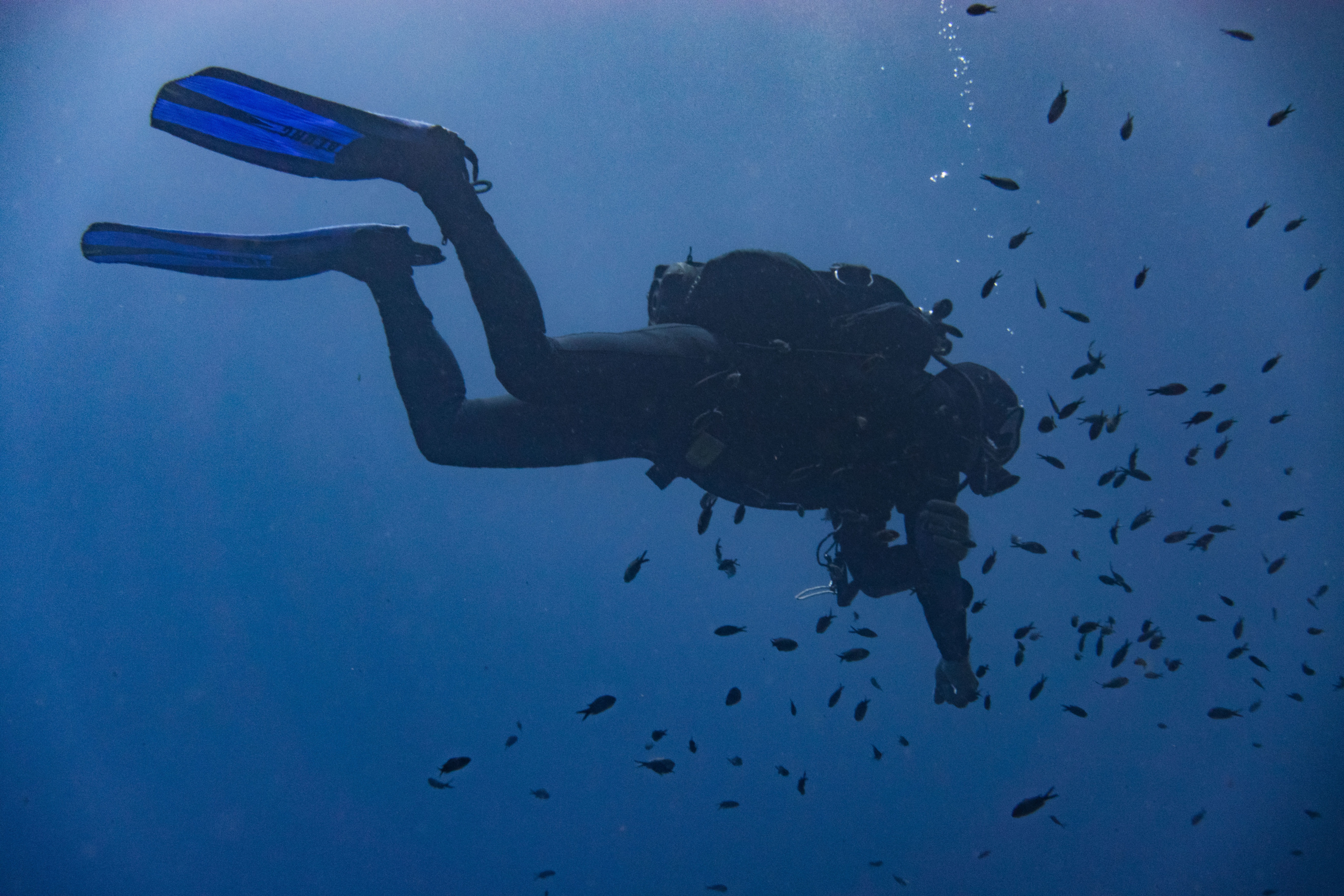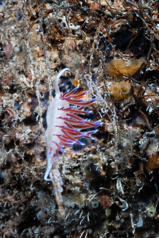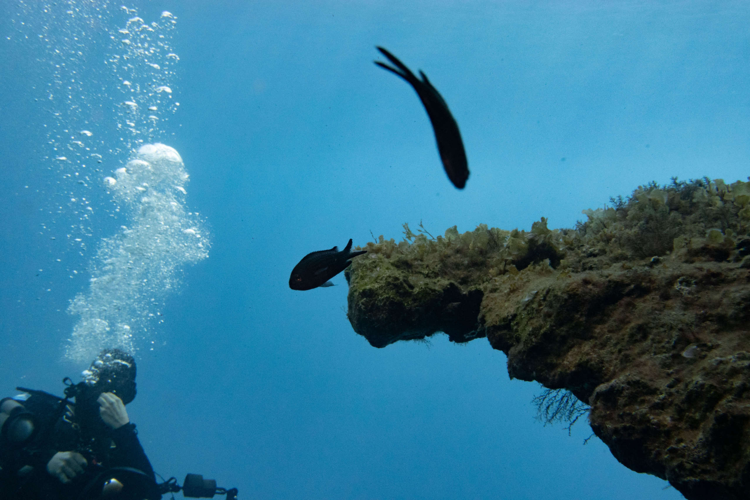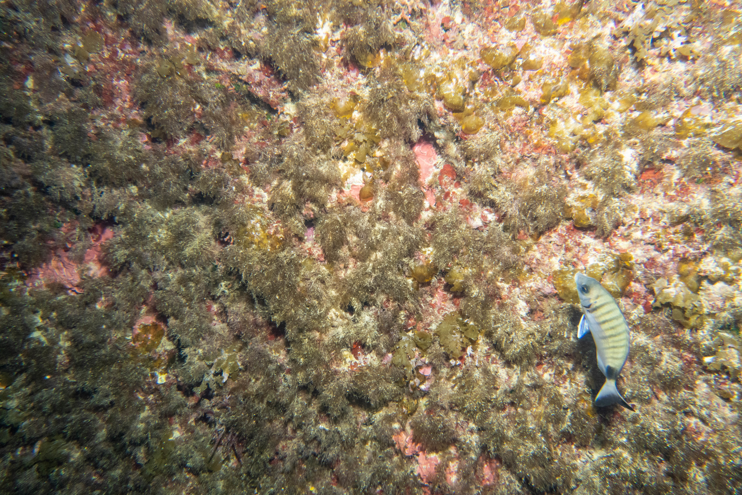 Nach einer gemütlichen Pause machen wir uns auf zur P31, doch es ist zu viel los und wir drehen ab zur Alexanders Cave, ein für mich neuer Tauchplatz, den Papa aber schonmal betaucht hat, um einer doppelten Betauchung der P31 zu entgehen. Es geht los in eine Höhle auf 3m, die ins kleine Blue Hole mündet, von dort aus weiter über Boulder und Sandbänke zur Höhle. In der Höhle ist eine Nudibranch, die ich aber nicht gut fotografieren kann weil ich das falsche Objektiv auf der Kamera habe. Auf dem Rückweg sehen wir noch einige Flundern, die aber nicht gut zu fotografieren sind, da sie sich kaum vom Sand abheben. Insgesamt ist es hier aber sehr schön, vor allem im Blue Hole wo das Licht sehr gut einfällt. Beim Ausstieg versuche ich mich noch an over/under Fotos, alles in allem auf jeden Fall ein guter erster Tauchtag!