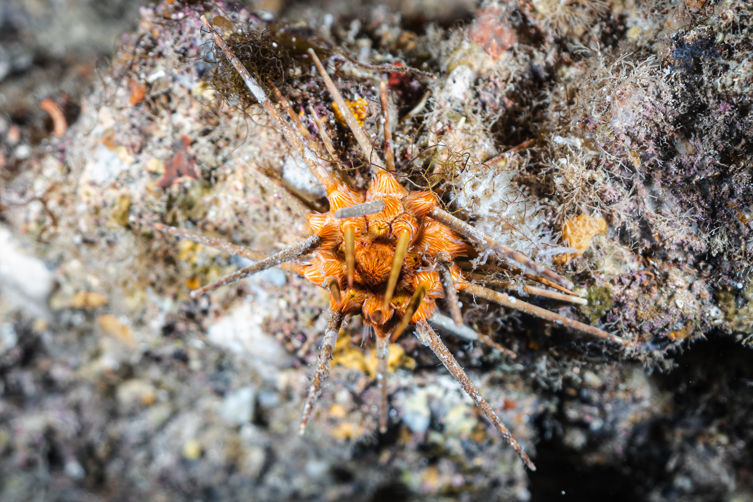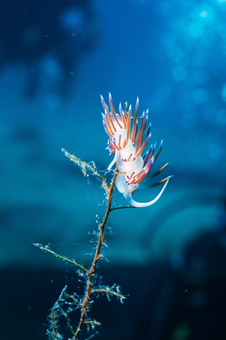 Lantern Point ist ein Platz, der weit oben auf meiner Wunschliste für diesen Urlaub gestanden ist – es geht durch einen Chimney von 5m auf 18m und dann durch einige „Unterführungen“ durch (ich glaube ca. 5 waren es insgesamt). Sehr cool, aber ich merke auch, dass ich an meiner Tarierung noch viel arbeiten kann, dadurch dass ich mich sehr darauf konzentriere nicht mit der Kamera am Stein zu schrammen stoße ich immer wieder mit meinen Flossen wo an… Der Tauchgang endet damit, dass Eva mir eine Nudibranch zeigt, doch das falsche Objektiv und ein bisschen Strömung verhindern, dass ich ein gutes Foto davon machen kann.