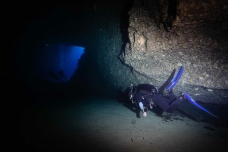 Tag 3 ist ein weiterer Klassiker auf der Insel – wir fahren in den Nordwesten nach Dwejra, wo wir den ersten Tauchgang im Blue Hole machen. Wir tauchen den sehr viel vom Tauchplatz und sehen unter anderem die Blue Hole Cave, die Alpen mit Matterhorn und den Chimney zu Coral Garden. Uns wird auch gesagt dass man in den Bouldern vom ehemaligen Azure Window immer noch die Haken der Kletterer sehen kann, doch die finden wir nicht, so bleibt auch noch was fürs nächste Mal 😉