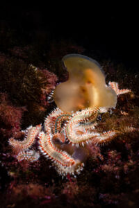 Der zweite Tauchgang findet ganz klassisch bei Inland Sea statt. Wir tauchen durch den Tunnel und dann links raus und sehen auch einige Spiegeleiquallen.