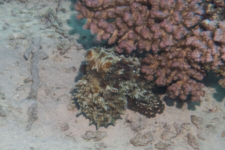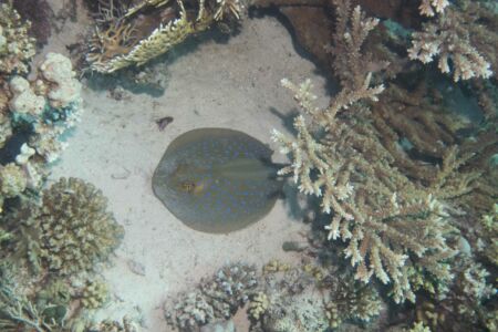 Der erste Tauchgang ist nochmal bei Gobai Soraya, wir lassen uns diesmal mit der Strömung vom Wrack wegdriften. Es ist ein sehr entspannter Tauchgang, wir sehen viele Nudis, blue spotted stingrays und Feuerfische. Außerdem steht ein Oktopus einfach frei in der Landschaft rum und lässt sich ein bisschen anschauen. (Ich habe meine Kamera allerdings nicht mit da ich sie am Vortag ja nichtmehr zusammengebaut habe 😉 ) Außerdem schwimmt eine Muräne direkt unter unserem Guide Ellia vorbei, die er erst nachher bemerkt.
