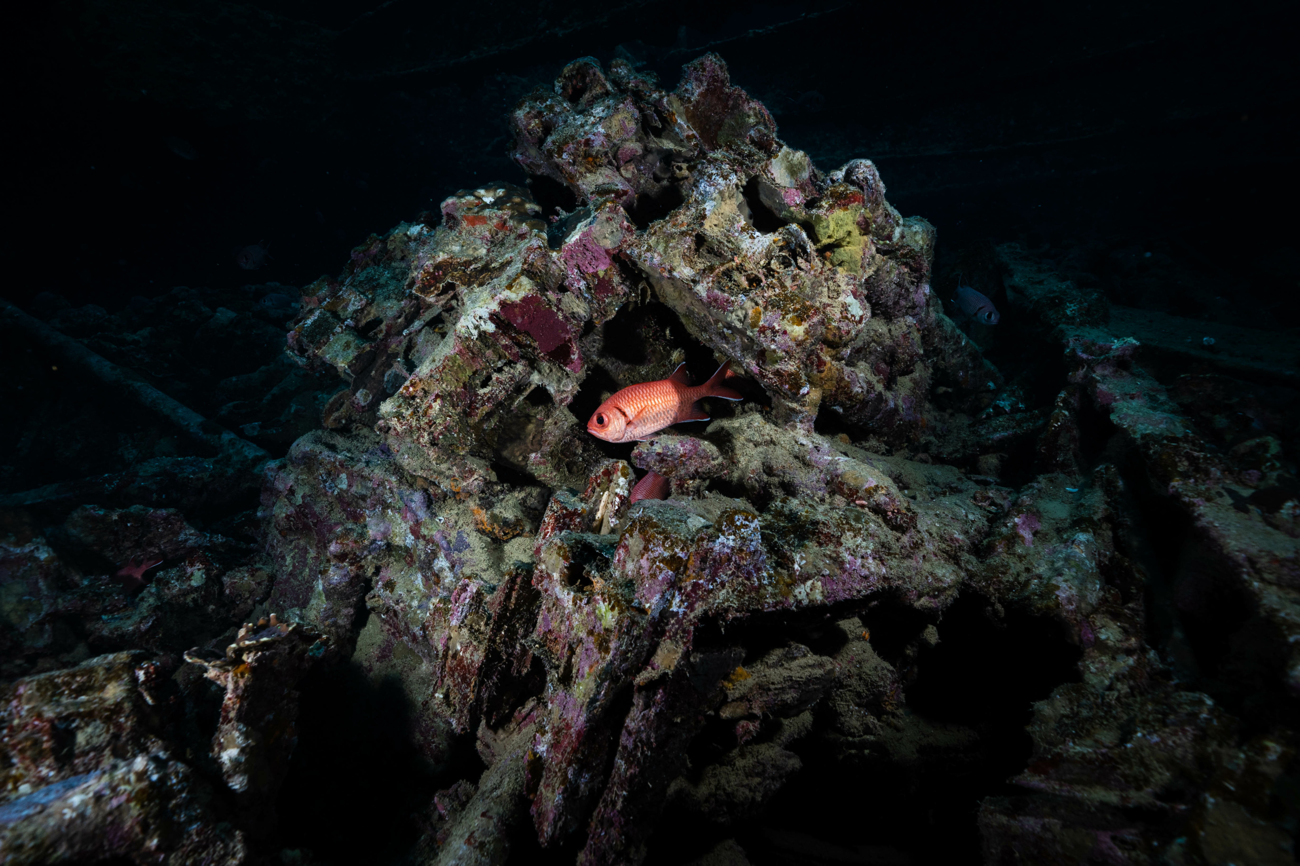 Auch der Nachttauchgang ist hier. Die Strömung ist weit weniger, doch wir gehen trotzdem mit Ellia um uns nicht zu verlaufen. Ich habe meine Kamera mit und es ist ein fantastischer Tauchgang, diesmal schwimmt eine Muräne direkt unter mir durch und erschreckt mich etwas als ich ein Foto von einem anderen Fisch machen wollte.