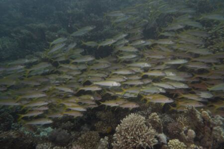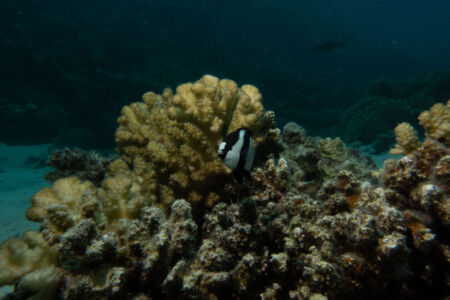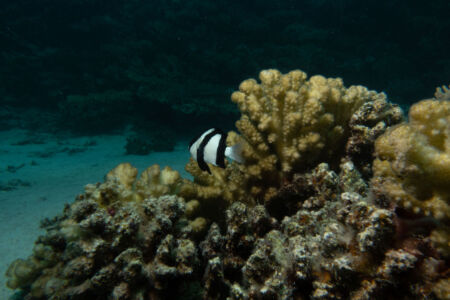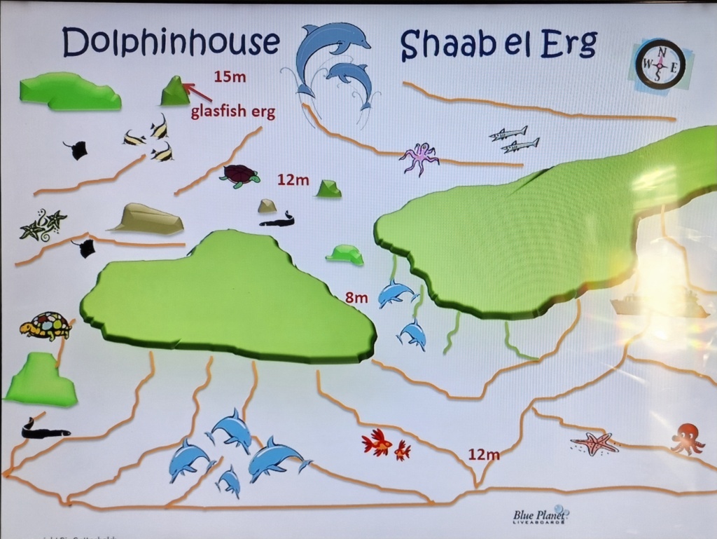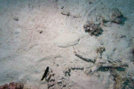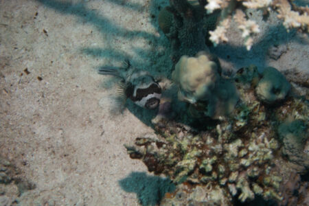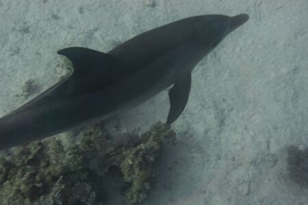 Unser letzter Tauchgang ist unguided, wieder am Dolphinhouse. Wir starten vom Boot aus, wo uns sofort ein Delphin begrüßt. Ich war gerade erst dabei die Kamera auszupacken und einzustellen, daher gibt es hier auch nur nen snapshot. Wir machen uns auf zum Laguneneingang bis etwa zu der Stelle wo wir am Vormittag waren. Dann drehen wir um und Papa und ich verlieren Ingrid und Ines, da ich noch ein bisschen nach Delphinen Ausschau halten will und außerdem als erster am Boot sein wollte, um die Kamera noch gut waschen zu können. Wir müssen gegen Strömung anschwimmen, was mir leichter fällt, da ich direkt über dem Boden tauche, doch Papa tut sich 1-2m über mir wesentlich schwerer. Wir halten kurz am Ausschaupunkt, doch sehen keine Delphine.