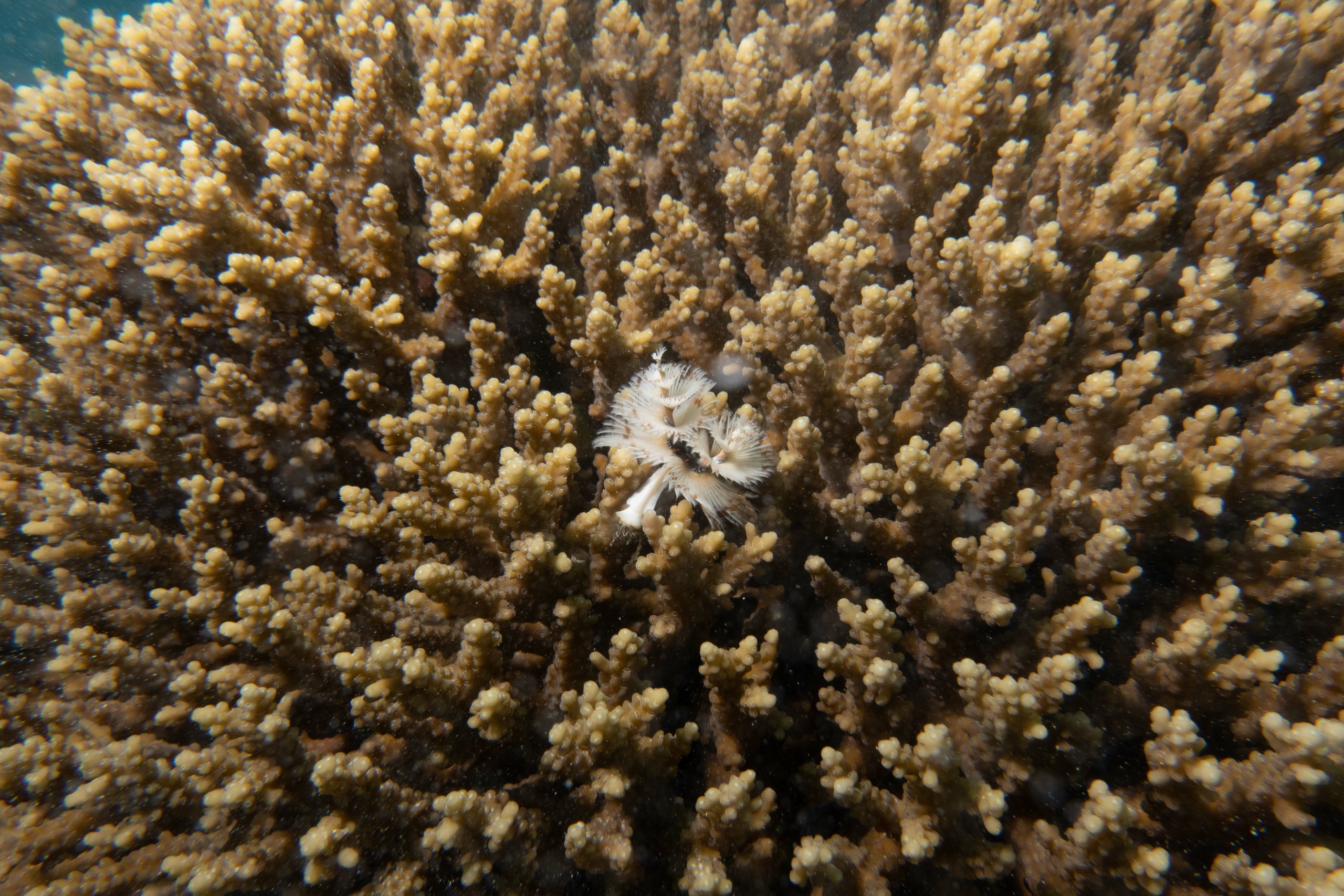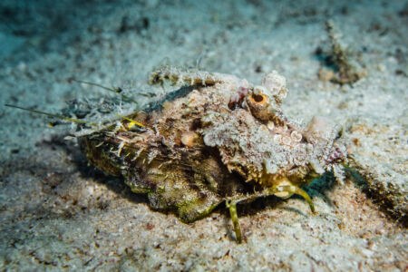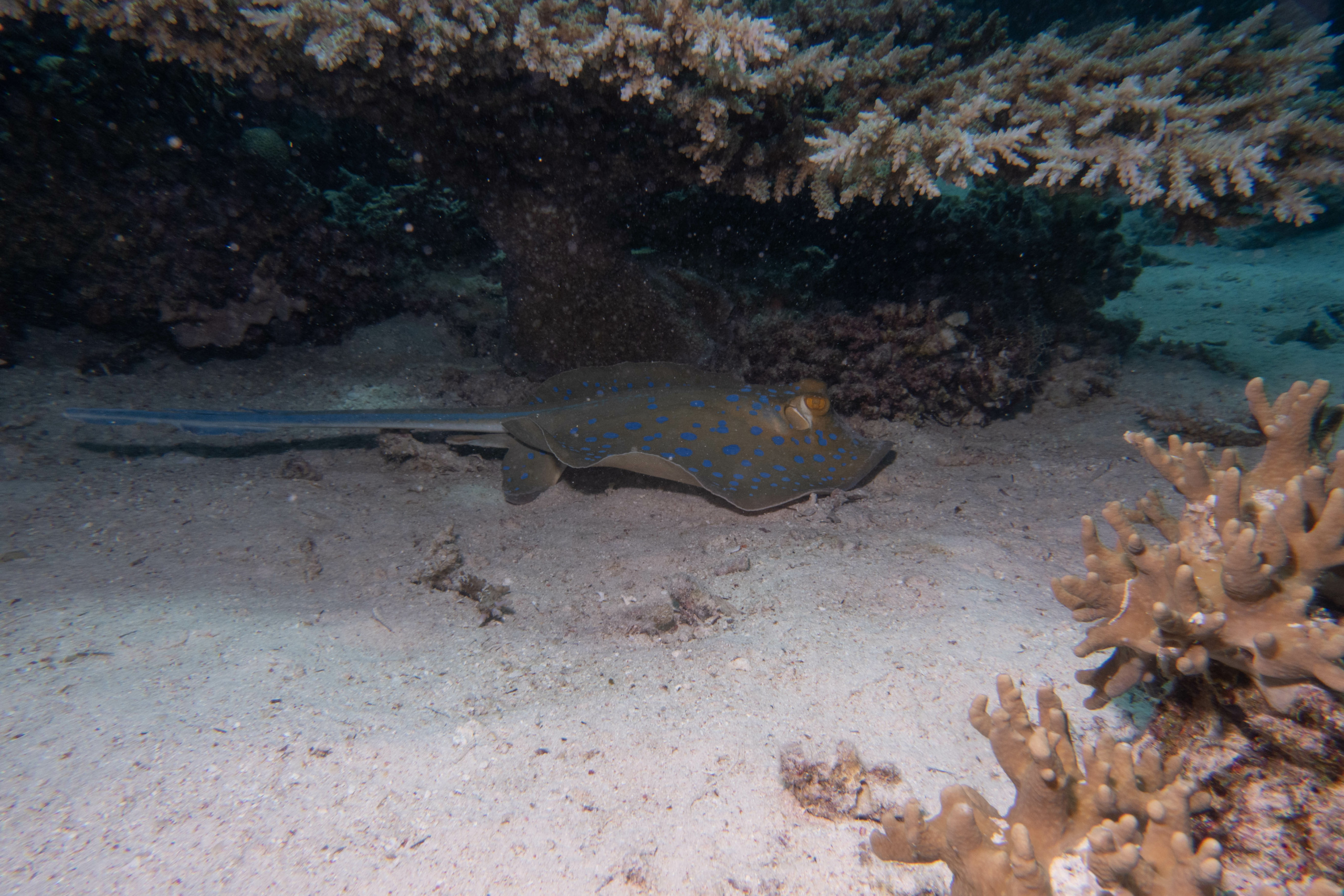 Wir sehen noch einen Filamented Devilfish, den die anderen aus der Gruppe scheinbar nicht mochten, den ich aber irrsinnig cool fand. Ich frage Papa unterwasser ob ich mir die Kamera ausborgen darf und schieße ein paar Fotos davon.